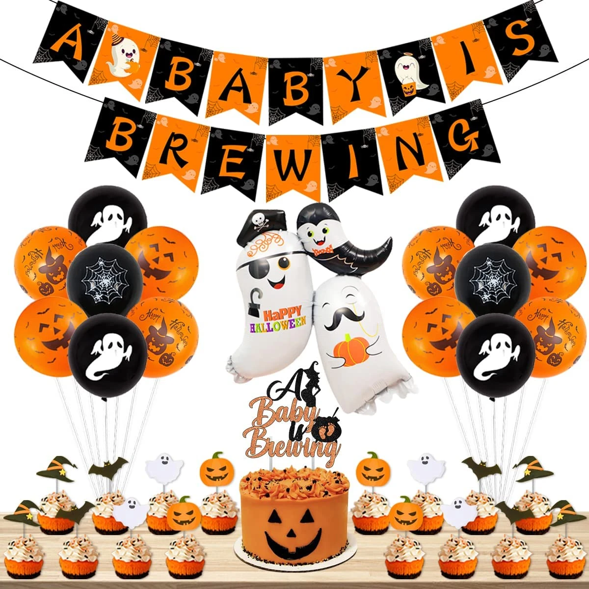 Halloween Party Decorations A Baby Is Brewing Banner Cake Topper Ghost Pumpkin Print Balloons For Baby Shower Party Supplies Aliexpress