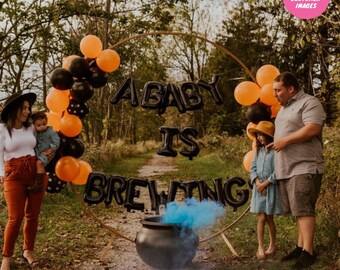 A Baby Is Brewing Balloons Halloween Themed Baby Shower Decorations Banner Halloween Baby Gender Reveal Party Balloon Decorations By Party Eight Catch My Party